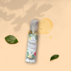 Aceite Seco Monoï de Tahití Esential Aroms auténtico. El Monoi de Tahití es la maceración de las flores de Tiaré, en aceite vegetal de coco. Producto tradicional de la Polinesia. Su efecto es altamente hidratante y suavizante de la piel, proporciona un bronceado luminoso y uniforme y un efecto seco inmediato, se puede utilizar para el cabello y el baño. Sin filtro solar. Ingredientes procedentes de agricultura ecológica.