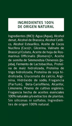 • Fórmula 100% natural, sin siliconas ni sulfatos.