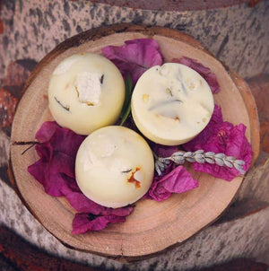 • Cera de soja NO GMO, aceites esenciales y flores silvestres disecadas.