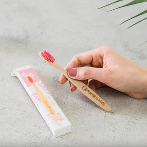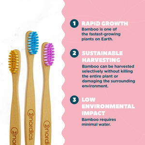 Los cepillos de dientes para niños de Nordics son perfectos para niños mayores de 3 años que están aprendiendo a cepillarse los dientes. Hechos de bambú, estos cepillos tienen un tamaño y peso ideales para que puedan usarlos solos. Las cerdas de dureza media están teñidas con tintes naturales.