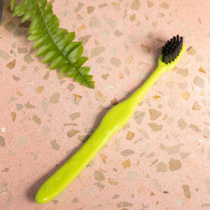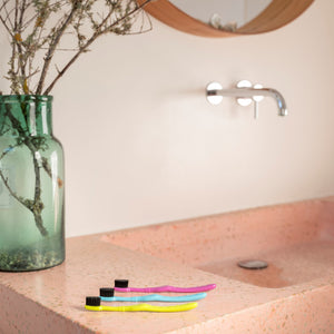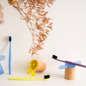 Para el cuidado y la higiene bucodental de los/las más pequeños/as de la casa. Tiene un mango elaborado de propileno reciclado. Además, las cerdas están hechas a base de compuestos vegetales y nylon, para luchar contra la proliferación de bacterias. El cepillo viene con un capuchón protector.