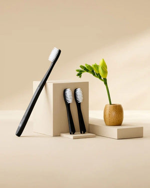Mejora tu rutina de cuidado bucal con el cepillo de dientes 3 en 1 de origen vegetal. Con un mango y tres cabezales intercambiables, reducir los desechos diarios es más fácil que nunca.