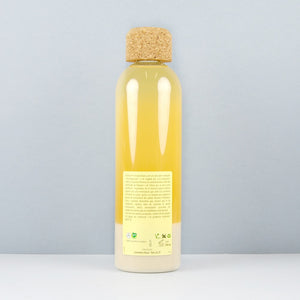Champú natural y ecológico elaborado artesanalmente adecuado para cabellos grasos y débiles. Con un uso continuado este champú elimina la grasa y la caspa, a la vez que ayuda en el proceso del crecimiento del cabello, dándole resplandor y fuerza. Además, tiene propiedades limpiadoras y tonificantes y es un buen regulador de la micro circulación cutánea.