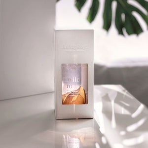 A un ramo de rosas silvestres con matices cítricos y un fondo cálido de vainilla. Una fragancia natural que transmite amor, feminidad y energía positiva.