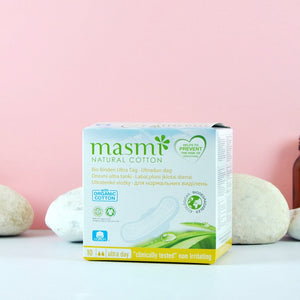 Estas Compresas Ultrafinas 100% Algodón Día con Alas de Masmi son absorbentes, finas, cómodas y discretas. Están elaboradas a base de algodón orgánico certificado y son hipoalergénicas, para prevenir alteraciones en la piel. Las alas y el adhesivo fijador garantizan una mayor sujeción y comodidad.