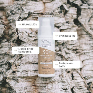 Como resultado de la investigación científica, la Crema Facial Color SPF 30 Certificada Bio Alga Maris de Biarritz ofrece la eficacia antioxidante de la alga gorria asociada a un filtro solar mineral 100% natural. Una fórmula con un toque de color para conseguir un brillo saludable y proteger la piel del rostro de las agresiones UV. Esta crema es perfecta para unificar y proteger la piel de las exposiciones solares en la ciudad, en la playa o durante actividades al aire libre.