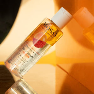 El Desmaquillante de Ojos Bifásico Juicy Shake de Mossa combina eficacia y suavidad para eliminar incluso el maquillaje más resistente sin irritar ni resecar. Su fórmula bifásica, natural y sin fragancia añadida, está enriquecida con ácido hialurónico, que hidrata y calma, y extractos de espino amarillo y frambuesa, ricos en antioxidantes y vitaminas esenciales para proteger y nutrir la piel del contorno ocular.