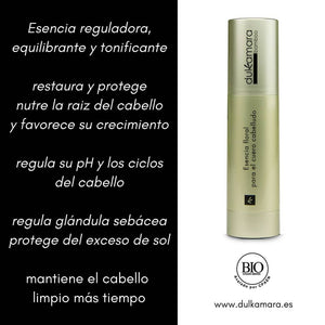 La Esencia Floral para el Cuero Cabelludo Dulkamara Bamboo es una loción natural que regula y equilibra las funciones del cuero cabelludo, asegurando un cabello más sano, fuerte y protegido. Formulada con extractos de ortiga, capuchina, caléndula, espliego y bambú, nutre la raíz, fortalece la fibra capilar y mantiene la flora del cuero cabelludo equilibrada, reduciendo picores, caspa, costras y exceso de grasa. Su aroma fresco y cítrico y su textura ligera proporcionan una sensación inmediata de limpieza y bienestar.