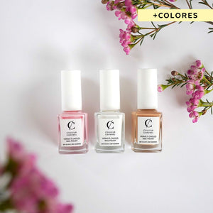 Esta fórmula de esmalte de uñas no solo hace que tus uñas luzcan radiantes, sino que también las cuida con ingredientes naturales y ecológicos de alta calidad. Este esmalte de uñas innovador combina lo mejor de la naturaleza con la belleza del color. Su fórmula única está enriquecida con casava, azúcar de caña y trigo.