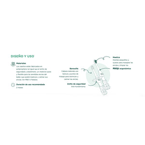 Para los bebés, este producto es ideal para ayudarles a aliviar los dolores de dentición desde los 6 meses con la ayuda de un adulto. Incluso antes, los padres pueden utilizar los cepillos para masajear las encías del bebé y calmar los primeros signos de dentición.