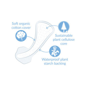 Algodón orgánico. Sin plástico. Libres de cloro. Compostable.